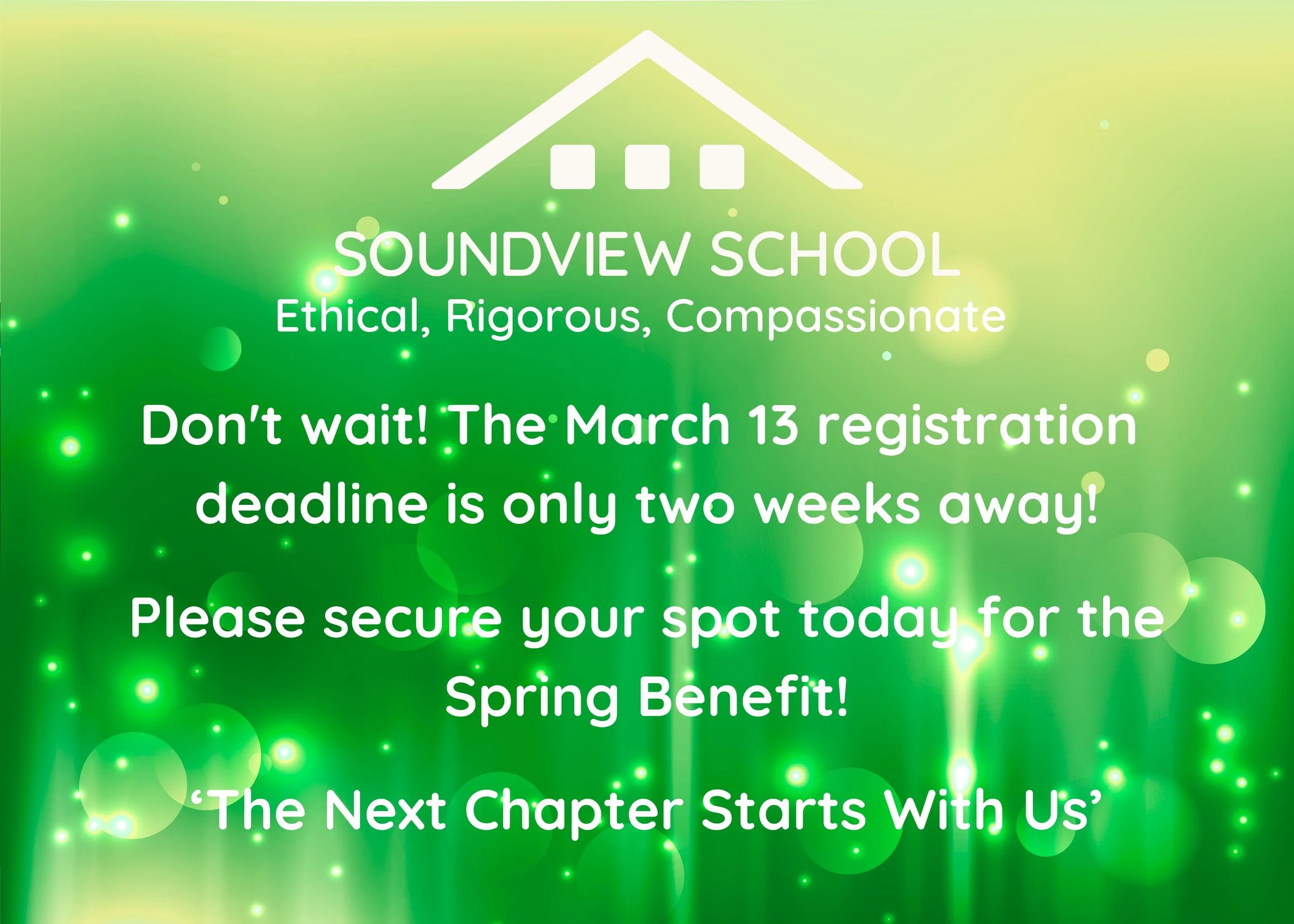 As we step into this season together, our Spring Benefit reminds us that the next chapter starts with us. The March 13 registration deadline is quickly approaching for the Soundview Spring Benefit on March 28 at the Edmonds Waterfront Center, and we truly need every member of our community there. This evening is more than a celebration; it is an investment in our students and a commitment to sustaining the ethical, rigorous, and compassionate education that defines Soundview. The future we envision for our school begins with the choices we make and the support we show today.